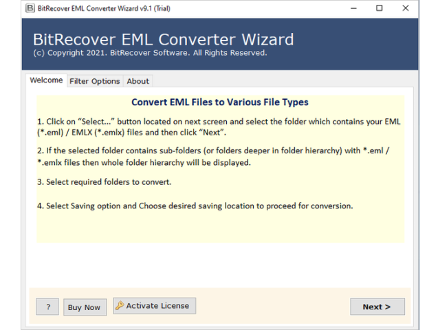 BitRecover EML Converter is a reliable tool to convert EML files from email clients like Windows Live Mail, Thunderbird, and Outlook Express into multiple formats such as PST, PDF, MSG, MBOX, and HTML. It supports bulk conversion while preserving folder structure, email properties, attachments, and metadata. The software allows selective conversion, handles unlimited files without data loss, and works on all Windows versions. Its user-friendly interface ensures both technical and non-technical users can efficiently manage and convert emails.