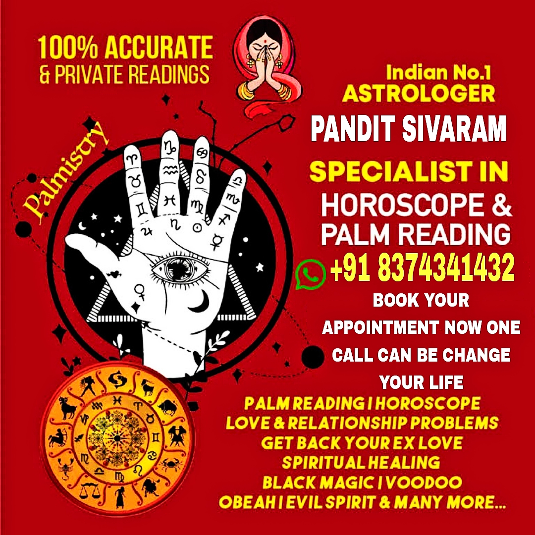 World famous Indian Traditional Skilled Astrologer and psychic reader and Bring Back your Love U PANDIT SIVARAM JI He can Solve your all kinds of problems like Love, Relationship, Family, Financial, business, job, health, etc.., All kind of problems can solve and Permanent solution, 100% Results...!