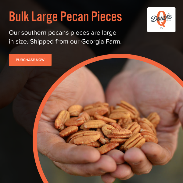 Double Q Pecan Company is one of the top pecan farms in Georgia, serving Central USA and Eastern Canada. We proudly provide mammoth pecan halves, roasted pecan halves, and Elliot pecans for sale. Our products bring the taste of Georgia pecans to your home, straight from our organic farm. With a commitment to sustainable farming and excellence, we supply fresh pecans through our nut processing plant to both retail nut shops and gourmet specialty foods stores. Whether you're enjoying our pecans from a local & organic market or purchasing wholesale, we guarantee farm-to-fork quality in every bite of our gourmet nut products.