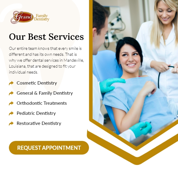 Grand Family Dentistry is a leading dentist in Baton Rouge offering professional care for all ages. From dental implants to dental veneers and cosmetic services in Baton Rouge, our team is dedicated to creating healthy, beautiful smiles. Our all-inclusive dental services include everything from routine cleanings and exams to advanced cosmetic dentistry, orthodontic dental treatments like Invisalign, and specialized pediatric dentistry for your little ones. We also offer restorative dentistry and periodontics to restore and protect your teeth. No matter your needs, we’ll make sure your smile gets the care it deserves in a welcoming, comfortable environment.