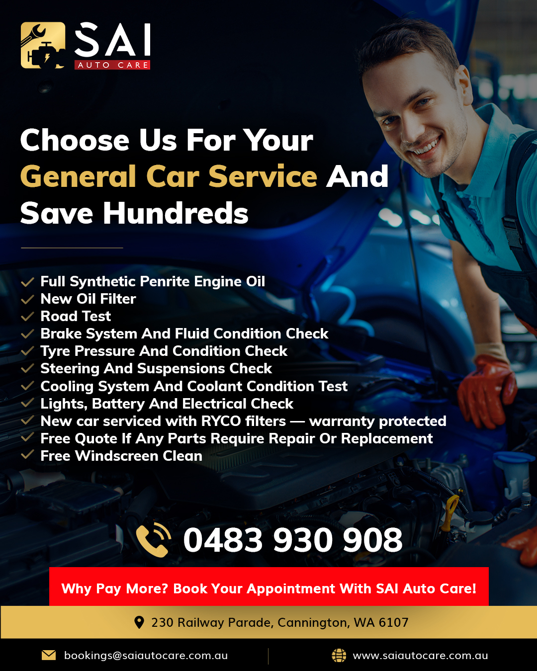 SAI Auto Care Perth is a one-stop solution for all your car problems. We deal in providing a full range of car services in Perth for Diesel & Petrol cars of all makes & models including Mercedes, Audi, Jaguar, Volkswagen, BMW& many more. Being a leading car mechanic Perth, we strive for providing top-notch car services from our end to enhance your car performance. Call us to book a service!