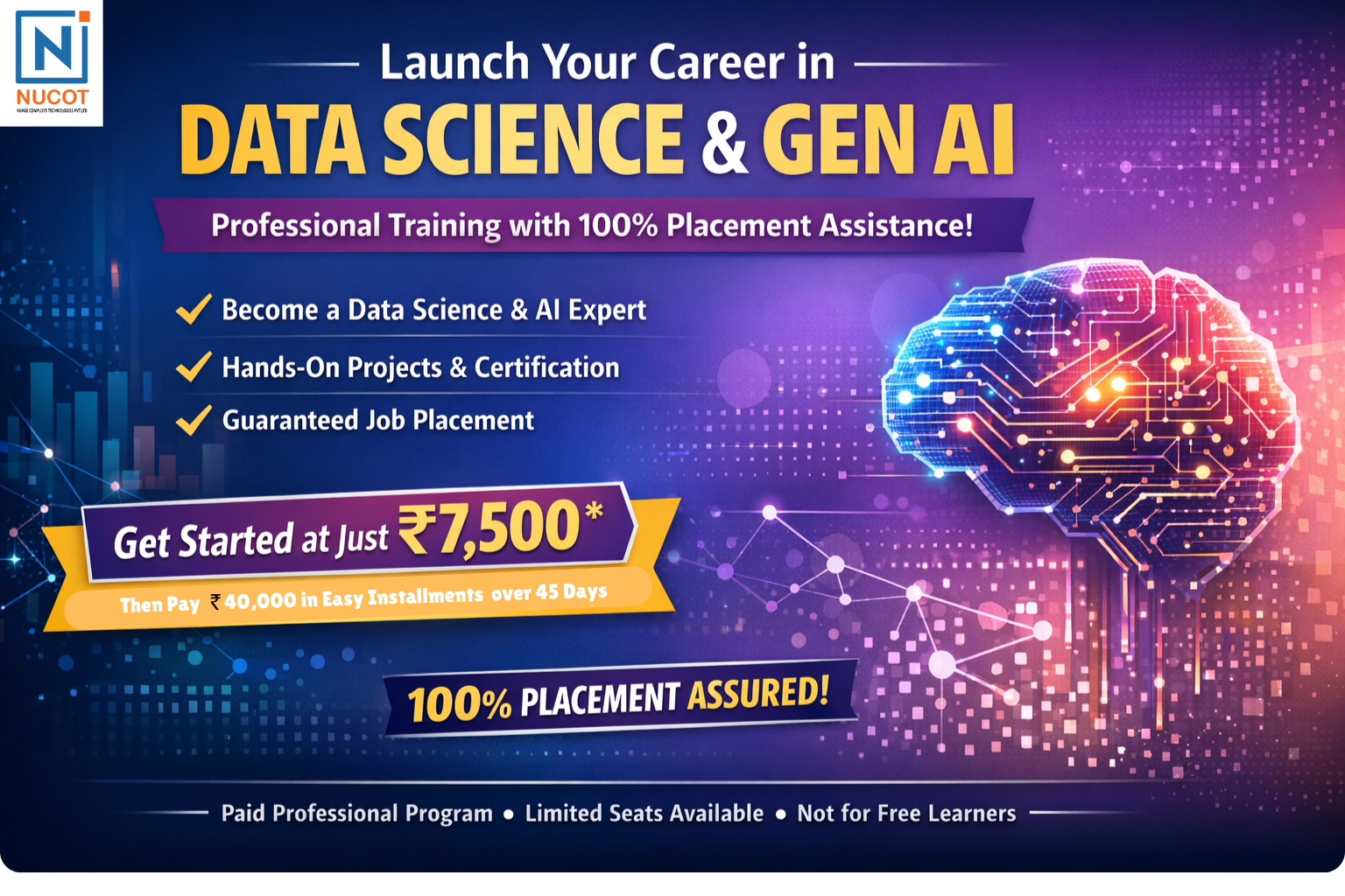 Data Science with Gen AI with Python has become one of the most in-demand career paths across industries. Our data science training and placement courses are designed to help learners build strong analytical, programming, and problem-solving skills using Python, Artificial Intelligence, and real-world data.