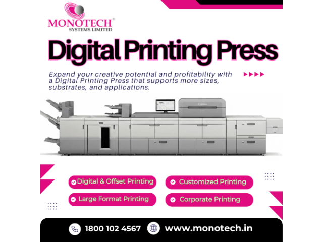 Looking for a reliable digital printing press that delivers speed and precision? Monotech Systems Limited provides advanced solutions designed for commercial printers seeking high-quality output and cost efficiency. Our machines support fast turnaround, vibrant color consistency, and low maintenance—ideal for growing print businesses. Why choose Monotech? ✔ High-speed production ✔ Consistent print quality ✔ Energy-efficient technology Need a scalable printing solution? Our experts help you select the right press based on your business needs. Contact Monotech Systems Limited todayVisit Us : https://monotech.in/ricoh/Address:  A – 40, Naraina Industrial Area Phase - 2 New Delhi- 110028, Delhi, India...