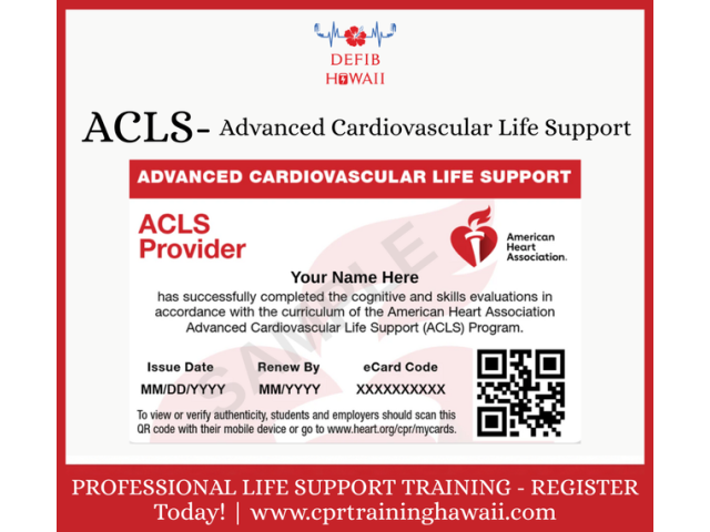 This course provides a complete foundation in advanced cardiac emergency response for nurses, physicians, paramedics, and other licensed providers. Participants practice systematic assessment, respiratory and cardiac stabilization, rhythm interpretation, and rapid intervention strategies. Using case-based simulations, the class emphasizes teamwork, role clarity, and high-pressure decision-making. Instruction is aligned with the latest AHA guidelines and includes airway management practice, pharmacology review, and stroke/cardiac arrest protocol application. Certification is valid for two years and can be used for hospital credentialing or professional requirements. https://www.cprtraininghawaii.com/classes/acl...