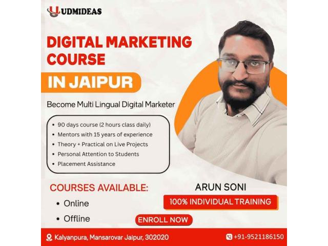 If you want to learn digital marketing then enrolling in a digital marketing course is the best choice. With a course, you get a complete roadmap plus guidance from experienced mentors who make every concept easy to understand. Instead of learning bits and pieces from here and there, a proper comprehensive course from UDMIDEAS Digital Marketing Institute Jaipur will help you stand out in this competitive world. Institute's pro digital marketing course will help you explore social media, SEO, SMM, PPC and other digital marketing concepts in the most practical way. You will also get to work on live projects so that you can apply your knowledge immediately. So, join this amazing, all-in-one, affordable course for ...