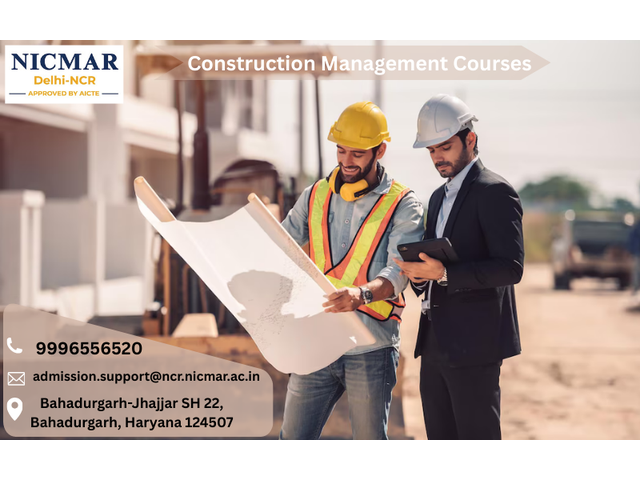 NICMAR University Delhi-NCR offers specialized Construction Management courses designed to equip students with industry-ready skills. These programs cover project planning, cost estimation, risk management, sustainable construction practices, and contract administration. With a blend of theoretical knowledge and practical exposure, the courses prepare students for leadership roles in the construction and infrastructure sectors. The curriculum is updated to meet global industry standards, ensuring strong placement opportunities. NICMAR Delhi-NCR’s Construction Management courses are ideal for aspiring professionals aiming to build successful careers in real estate, infrastructure, and project management.