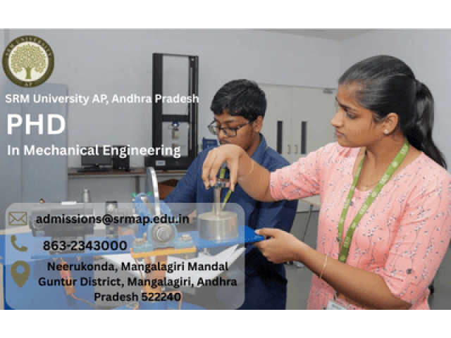 The Ph.D. in Mechanical Engineering program at SRM University AP is designed for advanced research in areas such as thermal sciences, design, manufacturing, materials, and robotics. The program encourages innovation through interdisciplinary research and industry collaboration. Students gain expertise in theoretical and experimental methods while contributing to sustainable engineering solutions. With access to world-class laboratories and experienced faculty mentors, scholars are well-prepared for careers in academia, research and development, and advanced engineering industries. The program emphasises innovation, technical excellence, and global research impact.