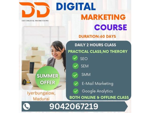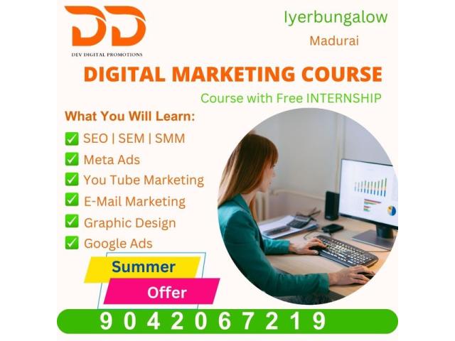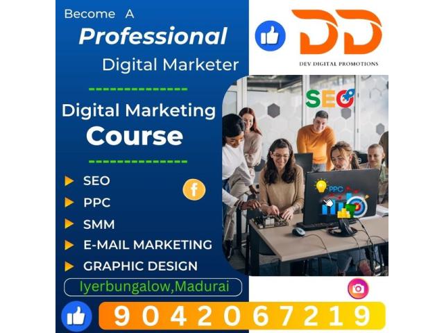 Madurai's leading digital marketing training, Dev Digital Promotions is one of the best places to learn digital marketing courses in Iyer bungalow, Madurai.  Get Digital marketing certification courses which includes SEO, Social Media Marketing, Paid ads ,Google Ads ,E-Mail Marketing more. our comprehensive certification programs have you covered.Our instructors, who are experts in their respective fields, provide comprehensive guidance and support to ensure you reach your personal and professional goals. Known for our hand. no:1 digital marketing course Madurai.digital Marketing training institute iyer bungalow Madurai.
