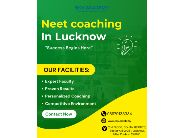 Looking for NEET coaching in Lucknow that truly understands student needs? SKV Academy offers a results-driven environment backed by experienced mentors and structured learning plans. Along with NEET, we also guide students through best JEE Main and Advanced in Lucknow courses. Carefully curated study material and smart strategy sessions help aspirants prepare with confidence. Key Highlights: Expert guidance for NEET & JEE aspirants Regular mock tests with detailed analysis Quality study materials for Physics, Chemistry & Biology Focused learning for school + competitive balance Contact Us for more details  Get Direction :  Website visit Phone : +91 8979133334 E-mail : skvacademy1@gmail....