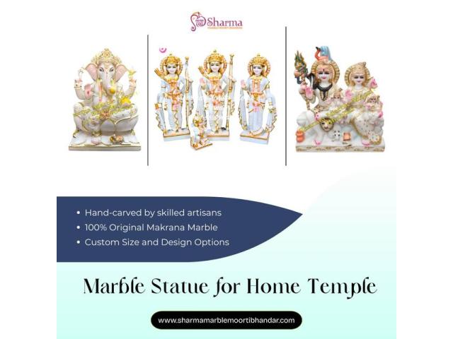 Do you want to bring divine spirituality with beauty into your home? Order beautiful hand-carved marble statues for your home temple, crafted by skilled artisans using premium Makrana marble. Our collection includes an intricately carved Shiv Parivar idol, a sangmarmar Ganpati murti, and more.