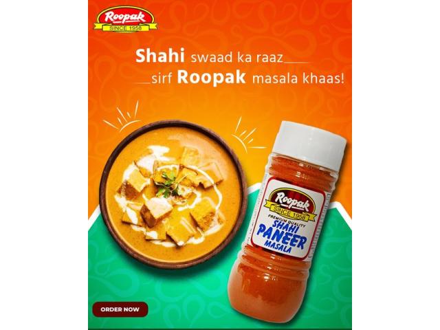 Looking to buy shahi paneer masala online in India? Visit Roopak Stores today. They offer high-quality masala that makes your paneer dishes taste rich and delicious. Shopping online is easy, and you can get your order delivered to your home quickly. Roopak Stores provides authentic spices, ensuring your cooking has the perfect flavor every time. Try it for your next meal.