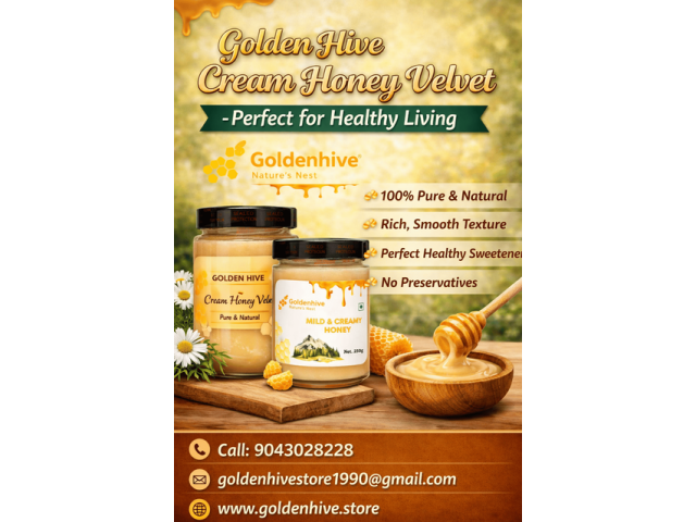 Discover the goodness of Golden Hive Cream Honey Velvet, a perfect blend of taste and health for your daily lifestyle. This premium cream honey velvet offers a smooth, rich texture and natural sweetness, making it an ideal choice for a healthy alternative to sugar. Packed with natural nutrients, it supports your wellness while enhancing the flavor of your meals. Choose Golden Hive for purity, quality, and a delicious step towards healthy living every day. Know More : https://goldenhive.store/products/cream-honey-velvet-whipped-perfection #CreamHoney,#CreamHoneyVelvet,#GoldenhiveCreamHoney,#OrganicCreamyHoneyOnline,