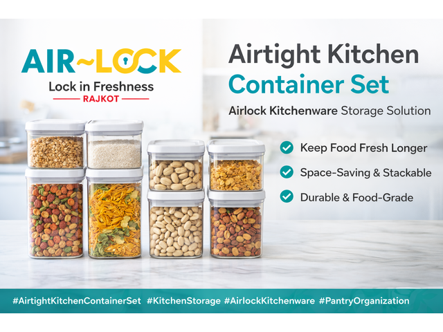 Keep your kitchen neat and your food fresh with the Airtight Kitchen Container Set from Airlock Kitchenware. Featuring a secure airlock seal and durable design, these containers are perfect for storing grains, snacks, and spices while saving space and maintaining hygiene. Visit Us :  https://airlockkitchenware.com/product-category/dry-storage/