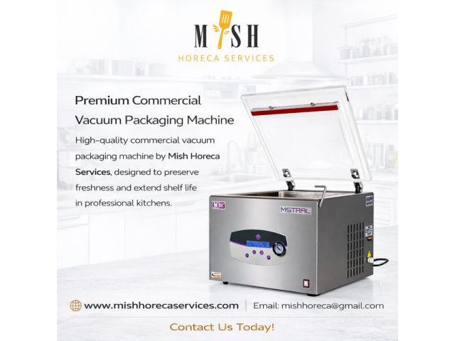Upgrade your food preservation process with a high-performance Commercial Vacuum Packaging Machine from Mish Horeca Services. Designed for restaurants, hotels, catering units, and food processing businesses, this machine ensures airtight sealing, extended shelf life, and maximum freshness. Built with durable stainless steel and advanced vacuum technology, our Commercial Vacuum Packaging Machine helps reduce food waste, improve hygiene, and enhance storage efficiency. Ideal for heavy-duty commercial use, it delivers consistent performance and reliable results for professional kitchen operations. Contact Mish Horeca Services today for premium commercial kitchen equipment solutions.