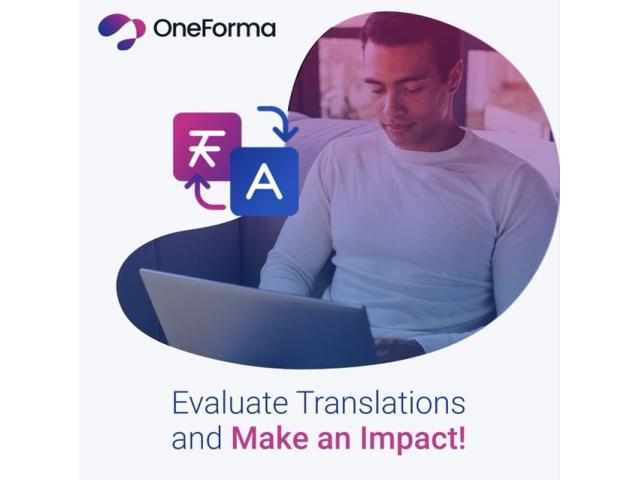 Join Acceptability-Translation Raters Project today!    At OneForma, we’re eager for you to join our new remote project and shape the future of translation technology!    Purpose: Collect and rate the quality of our client's translations, contrasted with source sentences, using a 0–100-point scale.    Where: Remote    How: You’ll evaluate translations from various sources, including Social Media content and Business Documents.    Main Requirements: - Native speaker or high-level proficiency in listed languages (see link below)  - Italian (Italy) - Korean (South Korea) - Translation or Linguistics background (BA or MA)  - Laptop and reliable internet connection    Compensat...