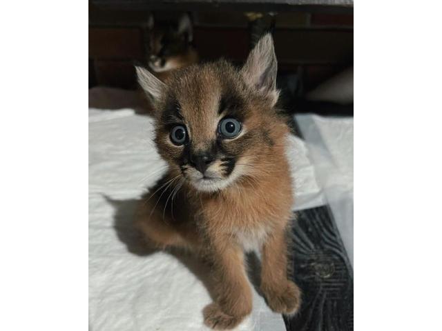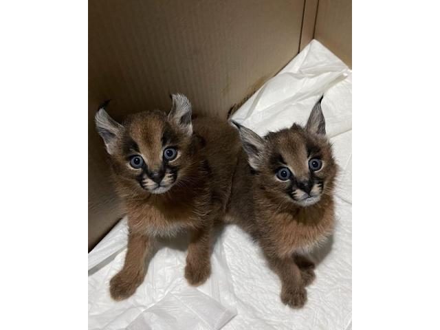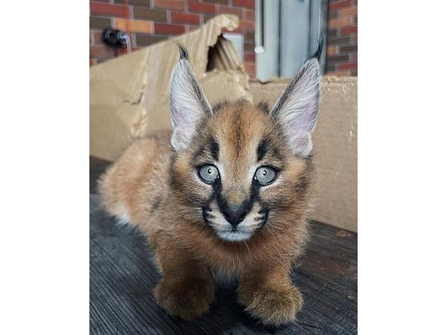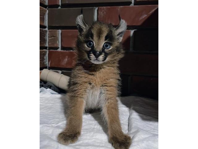 Two tiny bursts of desert, born with the wild grace of the African wind. At just two months old, these caracal kittens are already the embodiment of feline elegance: black ears with dancing plumes, gazes as piercing as dawn, and not yet fully aware of their future power.At this age, they are half baby, half wildcat: tender purrs, hesitant claws, but already possessing an innate presence. Two rare gems, born to impress.They are beginning to explore their environment, play with each other, and interact gently. Ideal for lovers of exotic felines (subject to compliance with current legislation).Calmer but just as observant, they already exude an almost feline wisdom. Together, graceful and full of promise.They expl...