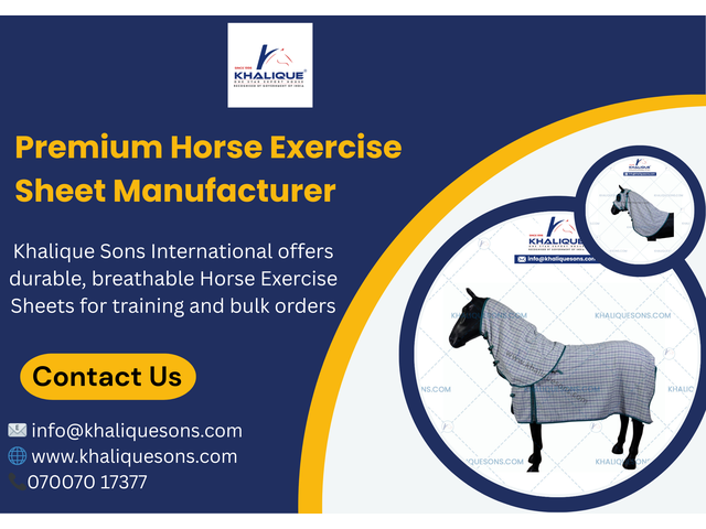 Khalique Sons International manufactures high-quality Horse Exercise Sheets made with durable and breathable fabric for horse training and workouts. Available in different sizes and colors with custom and bulk order options. Contact us for wholesale inquiries.