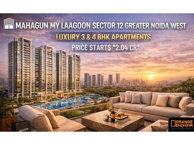 Mahagun My Laagoon is a premium waterfront residential project located in Sector 12, Greater Noida West, offering luxurious 3 & 4 BHK apartments with modern architecture and world-class amenities. Spread across approx. 7+ acres, this gated community features spacious homes ranging from 2025 to 3175 sq. ft., designed for comfort and elegance. Developed by Mahagun Group, the project includes a clubhouse, swimming pool, gym, landscaped gardens, jogging track, and advanced security systems for a premium lifestyle. With excellent connectivity to Noida, Delhi, and Ghaziabad via the FNG Expressway and Noida Expressway, it ensures high investment potential and easy accessibility.