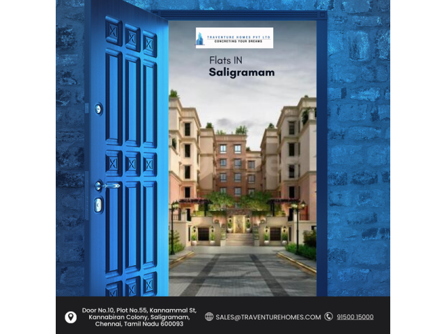 Discover your dream home in Saligramam with Traventure Homes! Our thoughtfully designed flats offer modern amenities, prime location, and unparalleled comfort. Perfect for families and professionals alike, experience luxurious living tailored to your lifestyle. Schedule a visit today!
