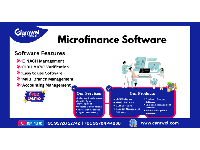 Looking for the best microfinance banking software? Camwel Solutions LLP delivers an advanced platform to manage loans, clients, and reports with ease. ✅ Simplify EMI tracking & collections ✅ Manage members and groups effortlessly ✅ Real-time dashboard & performance analytics ✅ 100% Secure, Cloud-Ready & Lightning Fast ???? Works perfectly on desktop and mobile ???? Book your Free Demo today and transform your banking or MFI operations with innovative digital solutions. ???? Call: +91 9028388889 | ???? www.camwel.com ???? Email: camwelsolutionllp@gmail.com