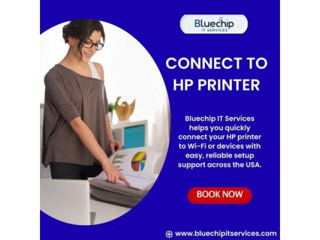 Connect to HP Printer in the USA with Bluechip IT Services for quick, hassle-free setup. We help you connect your HP printer to Wi-Fi, computer, or mobile devices smoothly, ensuring reliable printing for home and office use.