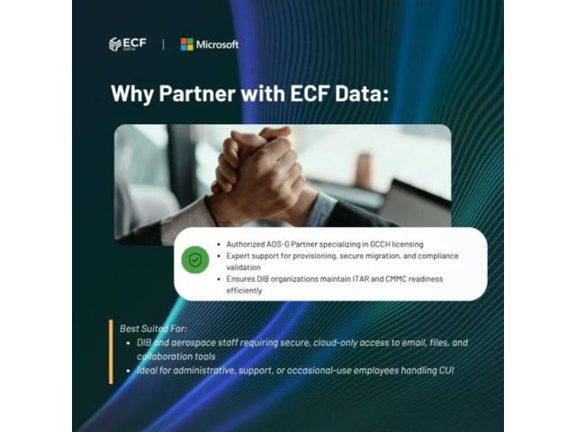 As a Microsoft AOS-G Authorized Partner, ECF Data delivers specialized GCC High licensing, validation, configuration, and migration services.