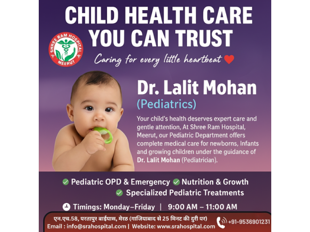 Looking for the best pediatricians near NH-58, Partapur, Meerut? Get trusted and compassionate child healthcare from experienced pediatric specialists dedicated to your child’s healthy growth and development. From newborn care and vaccinations to treatment of common childhood illnesses, allergies, and growth concerns, these pediatricians offer accurate diagnosis and personalized care. With child-friendly clinics, modern medical facilities, and a gentle approach, parents can feel confident and reassured. Conveniently located near NH-58, Partapur, Meerut, expert pediatric care is always close. Book your appointment today.