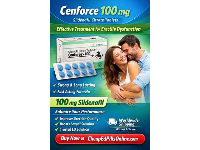 Cenforce 100 mg is a physician-recommended oral medication formulated to help manage erectile dysfunction (ED) in adult men. It is commonly prescribed to improve erectile function by supporting healthy blood flow to the penile region during sexual stimulation. The medication contains Sildenafil Citrate, a PDE5 inhibitor that works by relaxing blood vessels and enhancing circulation, making it easier to achieve and maintain a firm erection. By improving erectile response and performance, Cenforce 100 mg helps restore confidence, intimacy, and overall sexual well-being.