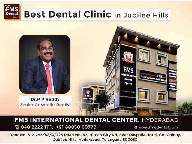 FMS Dental Hospital, Jubilee Hills, is one of the best dental clinics in Jubilee Hills, trusted for decades for advanced and compassionate dental care. Our NABH-accredited center follows WHO & CDC sterilization standards and houses expert specialists offering world-class dental treatments in a modern, comfortable setting.