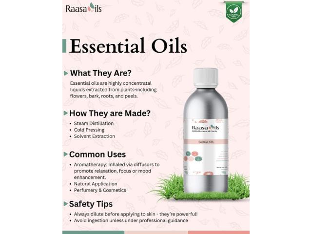 Discover the purity of nature with Raasa Oils Essential Oil, made from high-quality botanicals for natural wellness and relaxation. Ideal for aromatherapy, skincare, and massage, this therapeutic-grade oil offers soothing aroma and holistic benefits for mind and body. Perfect for diffusers, DIY beauty blends, and home use. 100% pure and natural ingredients Promotes relaxation and stress relief Improves skin and hair health Suitable for diffusers, massage, and DIY blends Shop Raasa Oils Essential Oil today and experience the difference in purity and quality.