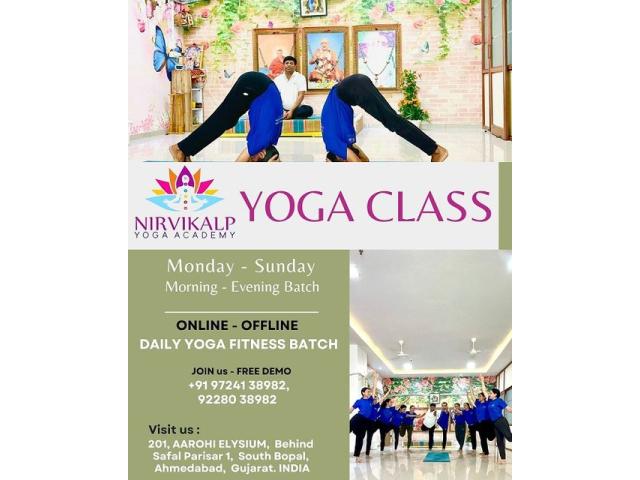 Discover balance, strength, and inner peace at Nirvikalp Yoga Academy, a trusted yoga class in Ahmedabad. We offer Monday to Sunday yoga classes with morning and evening batches, designed to fit every lifestyle. Whether you prefer online yoga classes from home or offline sessions at our peaceful studio, we have the perfect option for you.