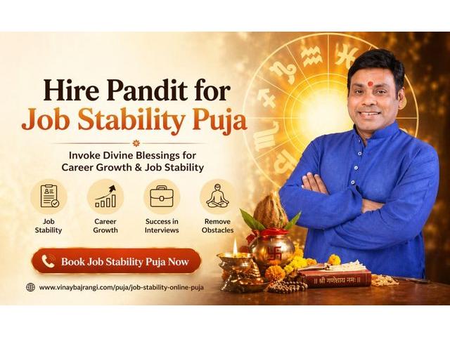 Facing frequent job changes, workplace conflicts, or career uncertainty? Hire Pandit for Job Stability Puja and invite divine blessings into your professional life. Renowned Vedic expert Vinay Bajrangi offers authentic online puja services designed to remove career obstacles and attract long-term job security. Each ritual is performed using personalised Vedic mantras aligned to your birth chart, channelling positive cosmic energies for stable career growth. Book your session today and experience powerful transformation from the comfort of your home. Call us now 9999113366