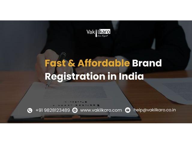 Secure your brand identity with brand registration in India from Vakilkaro. We provide fast processing, guidance, and convenience in getting your brand protected. Our experts manage the entire filing process, documentation, and regular updates, so you can concentrate on your business.