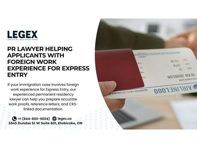 If your immigration case involves foreign work experience for Express Entry, our experienced permanent residency lawyer can help you prepare accurate work proofs, reference letters, and CRS-linked documentation.Strong legal review helps prevent refusals, delays, and missing points. Location: 5343 Dundas St W, Suite 601, Etobicoke, ON, CanadaPhone: +1 (844) 800-9004Website: https://legex.ca/ Reach out today to strengthen your Express Entry profile and PR submission.