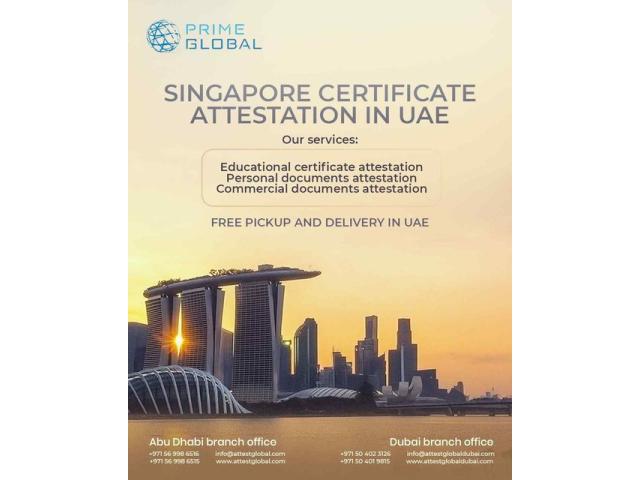 If you have documents issued in Singapore and plan to use them in the UAE for employment, higher education, business setup, or family visa purposes, attestation is a mandatory process. Singapore document attestation in the UAE ensures your certificates are legally recognized by UAE authorities, including the Ministry of Foreign Affairs (MOFA). Prime Global attestation services in abu dhabi offers fast, reliable, and affordable Singapore certificate attestation services in the UAE. Our expert team manages the entire process—from verification in Singapore to UAE Embassy and MOFA attestation—saving you time and effort. We handle all types of documents such as educational certificates (degree, diploma, tran...