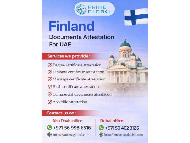 Prime Global attestation services in abu dhabi, dubai, Sharjah and uae provides reliable Finland certificate attestation across the UAE, handling Degree, Marriage, Birth, and Commercial documents with accuracy and speed.