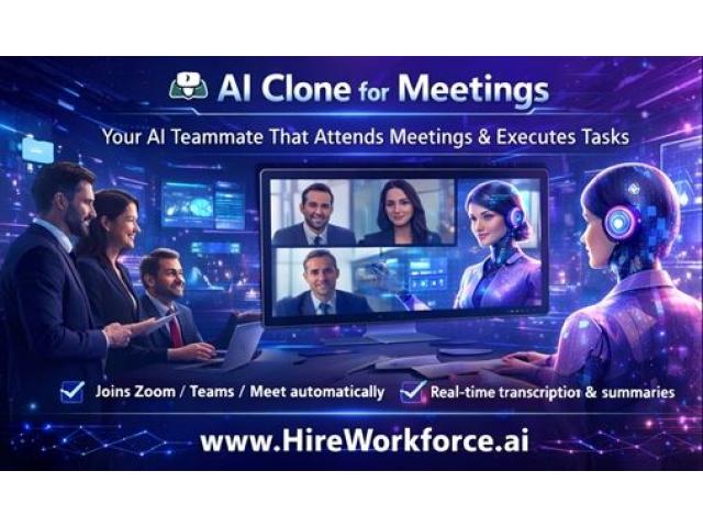 Businesses looking to streamline communication and boost efficiency are turning to advanced AI solutions like the AI Clone for Meetings offered by Hire WorkForce. This innovative technology is designed to replicate human interaction in meetings, allowing teams to automate routine discussions, capture key insights, and ensure nothing is missed even when team members are unavailable. The AI Clone for Meetings acts as a virtual participant that can attend, record, transcribe, and summarize meetings with high accuracy. It enables organizations to save time, reduce scheduling conflicts, and maintain consistent communication across departments. Hire WorkForce has developed this solution with a focus on usability and intelligent automation. The system not only records conversations but also highlights action items, generates summaries, and integrates with existing workflows. This allows businesses to make faster decisions and improve accountability without increasing workload. Ideal for startups, remote teams, and growing enterprises, this AI-powered tool transforms how meetings are conducted. It minimizes human dependency for routine tasks while enhancing collaboration and productivity. Organizations seeking a smarter way to manage meetings and optimize team performance will find the AI Clone for Meetings by Hire WorkForce a valuable addition to their digital toolkit. For more details, visit: https://hireworkforce.ai/