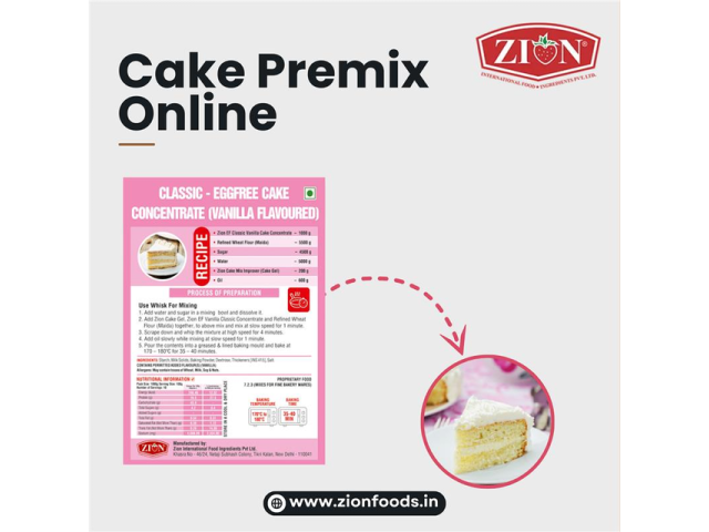 Looking to make delicious cakes at home without any hassle? Buy cake premix online from Zionfoods and enjoy premium quality, fresh ingredients, and consistent taste every time. Our cake premixes are easy to use, perfect for beginners, home bakers, and professionals. Zionfoods offers a wide range of flavors with fast doorstep delivery, ensuring you get the best products right when you need them. Order your favorite cake premix online today and experience smooth mixing, rich texture, and delightful results. Make every celebration special with Zionfoods’ trusted and high-quality cake premixes.