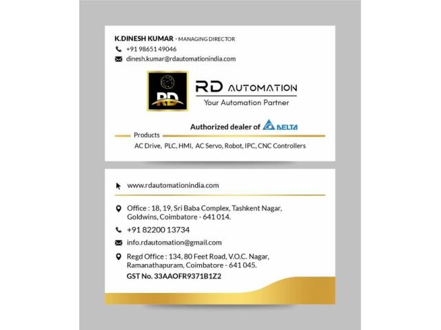RD Automation is an authorized Delta dealer in Coimbatore, providing high-quality automation solutions for industrial needs. While Delta Electronics is the original Delta manufacturer in Coimbatore, we specialize in supplying a wide range of products including VFD AC drives, PLCs, HMIs, servo motors, SCADA systems, sensors, and more. With a strong focus on reliability, efficiency, and dedicated service, we deliver automation solutions that support long-term industrial success.