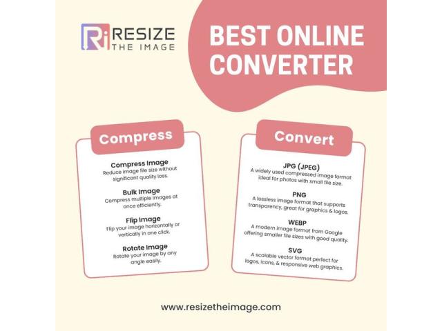 Want to optimize your images quickly and effortlessly? Use our online image resizer, photo compressor, and smart editing tools to change image dimensions, compress large files, or convert images into multiple formats without compromising quality. Fast, secure, and completely free, ideal for PDFs, websites, presentations, and social media uploads. Best Tools to Try: 1- Image Compressor2- Image Resizer3- Photo Rotator4- Image Cropper5- Image Flipper Try Now: www.resizetheimage.com