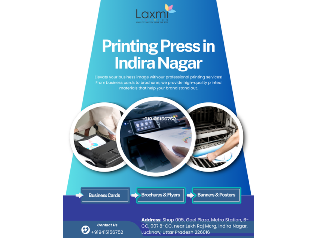 It is a trusted printing press in Indira Nagar in Lucknow, known for delivering top-quality printing solutions with precision and creativity. We specialize in digital printing, offset printing, brochure printing, business cards, flyers, banners, and customized packaging. With advanced printing technology and expert designers, we ensure every print reflects perfection. Whether you need bulk printing for your business or personalized prints for events, Laxmi Graphics is your go-to destination for reliable and affordable printing services in Indira Nagar, ...