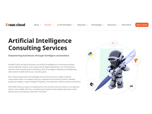 RAAS Cloud is a leading Artificial Intelligence Consulting Services provider that helps businesses use AI to automate work, improve decisions, and build smarter digital systems. The company focuses on turning real business problems into AI driven solutions that deliver clear and measurable results. RAAS Cloud offers complete AI consulting services that cover every stage of adoption. It starts with AI strategy and roadmap development, where experts study your business and find the best use cases for AI. The team then handles AI implementation and integration by adding AI models into your current systems without disruption. The company builds intelligent virtual assistants and chatbots that improve customer sup...