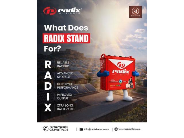 Radix Battery is one of the leading solar battery manufacturers in India, offering durable, high-performance batteries for solar energy storage. Our deep cycle batteries are engineered for long-term efficiency and reliability. Designed to support homes and businesses, Radix batteries ensure smooth and uninterrupted energy storage. Explore our products at https://radixbattery.com/solar or call 09690916611 for further assistance.