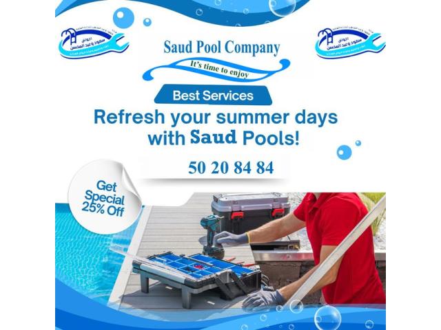 Professional Swimming Pool company, dealing with all kinds of Swimming pool services in Kuwait. Our Swimming Pools services: pool construction ,Fixed Ceramic ,Modeling, Water proof ,Repair Motor , Install water pump,Filter ,Heater ,water cooler, Pool Design Installation Cleaning Maintenance Renovation