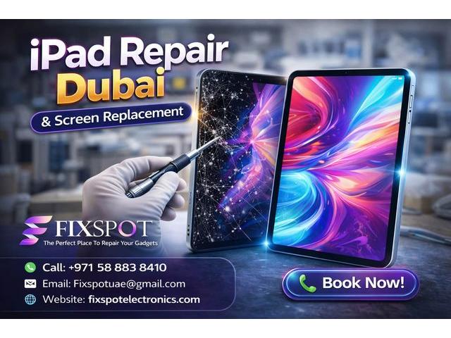 Need expert iPad repair Dubai? Fix Spot Electronics offers professional iPad screen repair Dubai and iPad screen replacement using genuine Apple parts. Our certified technicians fix cracked screens, battery drain, charging issues, and water damage with same-day service. We provide free pickup and delivery across Dubai, including Dubai Marina, JLT, and Deira. All repairs come with warranty. Book your fast, reliable iPad repair today.