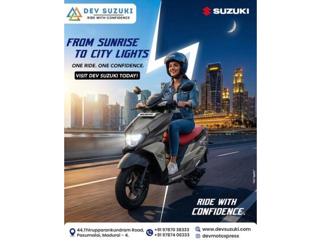 Looking for the latest Suzuki bikes in Madurai? At Dev Suzuki Pasumalai, we offer a wide range of Suzuki motorcycles and scooters to match every rider’s needs. From sporty bikes and dependable commuter motorcycles to stylish scooters, our showroom features the newest models along with genuine parts, test ride facilities, and expert guidance.Whether you’re buying your first bike or upgrading your ride, Dev Suzuki Pasumalai ensures a smooth, transparent, and customer-friendly experience from start to finish.Visit Us: 44, Tirupparankunram Rd, Pasumalai, Madurai, Tamil Nadu 625004Call Us: 88798 62305