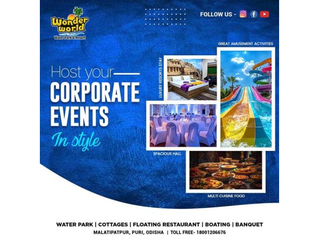 Host your next corporate event at Wonder World Water Park & Resort, the premier destination in Bhubaneswar for business gatherings and team-building activities. With state-of-the-art banquet halls, spacious outdoor venues, and luxurious accommodations, it’s ideal for conferences, workshops, and retreats. The resort combines modern amenities with a serene environment, ensuring a productive yet relaxing experience. Add excitement with water park attractions for team bonding and leisure. Elevate your corporate events at Wonder World Water Park & Resort!