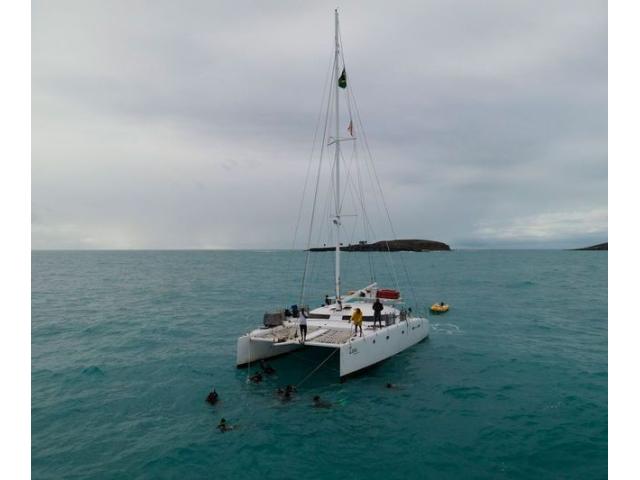 Aventure-se a bordo de um confortável catamarã mergulhando no arquipélago de Abrolhos, que fica a 80 km da costa.