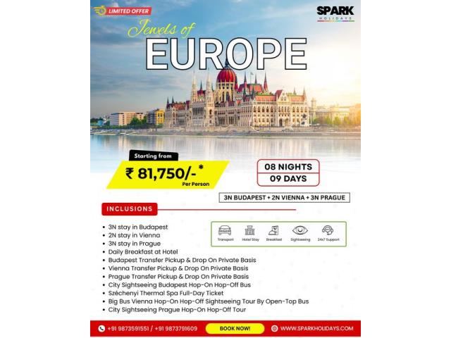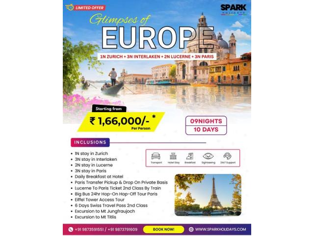 Looking for the best Europe tour package from Delhi? Spark Holidays offers customized and affordable Europe holiday packages covering Switzerland, Paris, Italy, Germany, Austria, Netherlands, and more. Experience the beauty of the Swiss Alps, romantic streets of Paris, historic landmarks of Rome, and scenic canals of Amsterdam with our expertly designed Europe trip packages. Whether you are planning a Europe honeymoon package, family vacation, or group tour, we create personalized itineraries based on your budget and travel preferences. Our Europe travel packages include: • Schengen visa assistance• Flight booking from Delhi & other cities• 3 star to luxury hotel stays• Daily breakfast & guid...