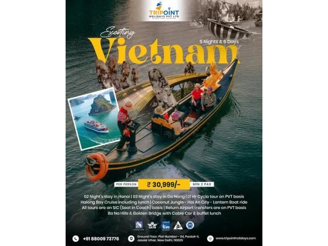 Looking for the cheapest Vietnam tour package that blends beauty, adventure, and culture? ???? Tripoint Holidays Pvt. Ltd. brings you an exclusive Vietnam holiday package at just ₹30,999 per person! Explore the stunning charm of Hanoi, Da Nang, and Hoi An with comfortable stays, guided sightseeing, and exciting activities like the Halong Bay Cruise, Lantern Boat Ride, and Ba Na Hills Cable Car. Experience Vietnam’s most iconic landmarks including the Golden Bridge and Coconut Jungle — all at the best Vietnam tour price! This 5 Nights / 6 Days Vietnam trip package from India includes return airport transfers, daily breakfast, and hassle-free tours. Whether you’re planning a romantic escape...
